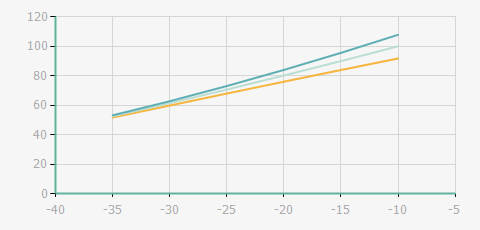 | 蒸發溫度 | 制冷量+/-5% | 能耗+/-5% | 現在能效+/-5% | 氣體流速+/-5% | 能效+/-7% | ||||