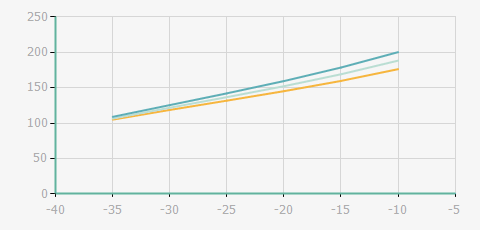 | 蒸發(fā)溫度 | 制冷量+/-5% | 能耗+/-5% | 現(xiàn)在能效+/-5% | 氣體流速+/-5% | 能效+/-7% | ||||