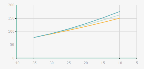 | 蒸發(fā)溫度 | 制冷量+/-5% | 能耗+/-5% | 現在能效+/-5% | 氣體流速+/-5% | 能效+/-7% | ||||