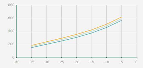| 蒸發溫度 | 制冷量+/-5% | 能耗+/-5% | 現在能效+/-5% | 能效+/-7% | ||||