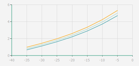| 蒸發(fā)溫度 | 制冷量+/-5% | 能耗+/-5% | 現(xiàn)在能效+/-5% | 氣體流速+/-5% | 能效+/-7% | ||||