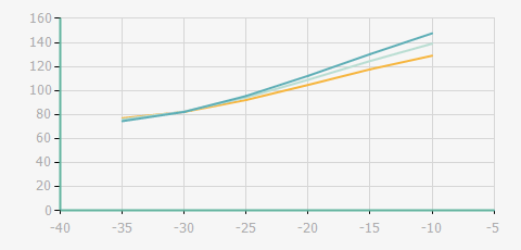 | 蒸發溫度 | 制冷量+/-5% | 能耗+/-5% | 現在能效+/-5% | 氣體流速+/-5% | 能效+/-7% | ||||
