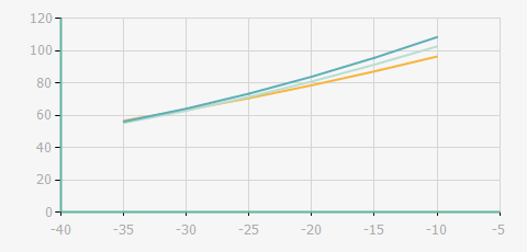 | 蒸發(fā)溫度 | 制冷量+/-5% | 能耗+/-5% | 現(xiàn)在能效+/-5% | 氣體流速+/-5% | 能效+/-7% | ||||