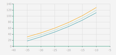 | 蒸發(fā)溫度 | 制冷量+/-5% | 能耗+/-5% | 現(xiàn)在能效+/-5% | 氣體流速+/-5% | 能效+/-7% | ||||