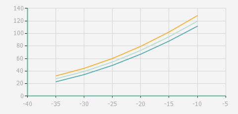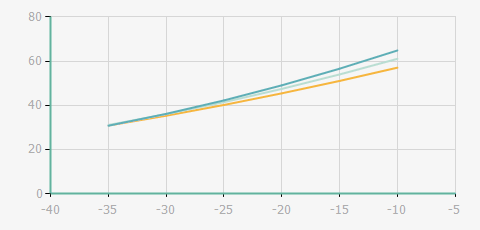 | 蒸發溫度 | 制冷量+/-5% | 能耗+/-5% | 現在能效+/-5% | 氣體流速+/-5% | 能效+/-7% | ||||