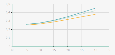 | 蒸發溫度 | 制冷量+/-5% | 能耗+/-5% | 現在能效+/-5% | 氣體流速+/-5% | 能效+/-7% | ||||