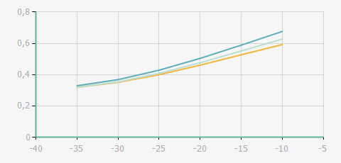 | 蒸發溫度 | 制冷量+/-5% | 能耗+/-5% | 現在能效+/-5% | 能效+/-7% | ||||